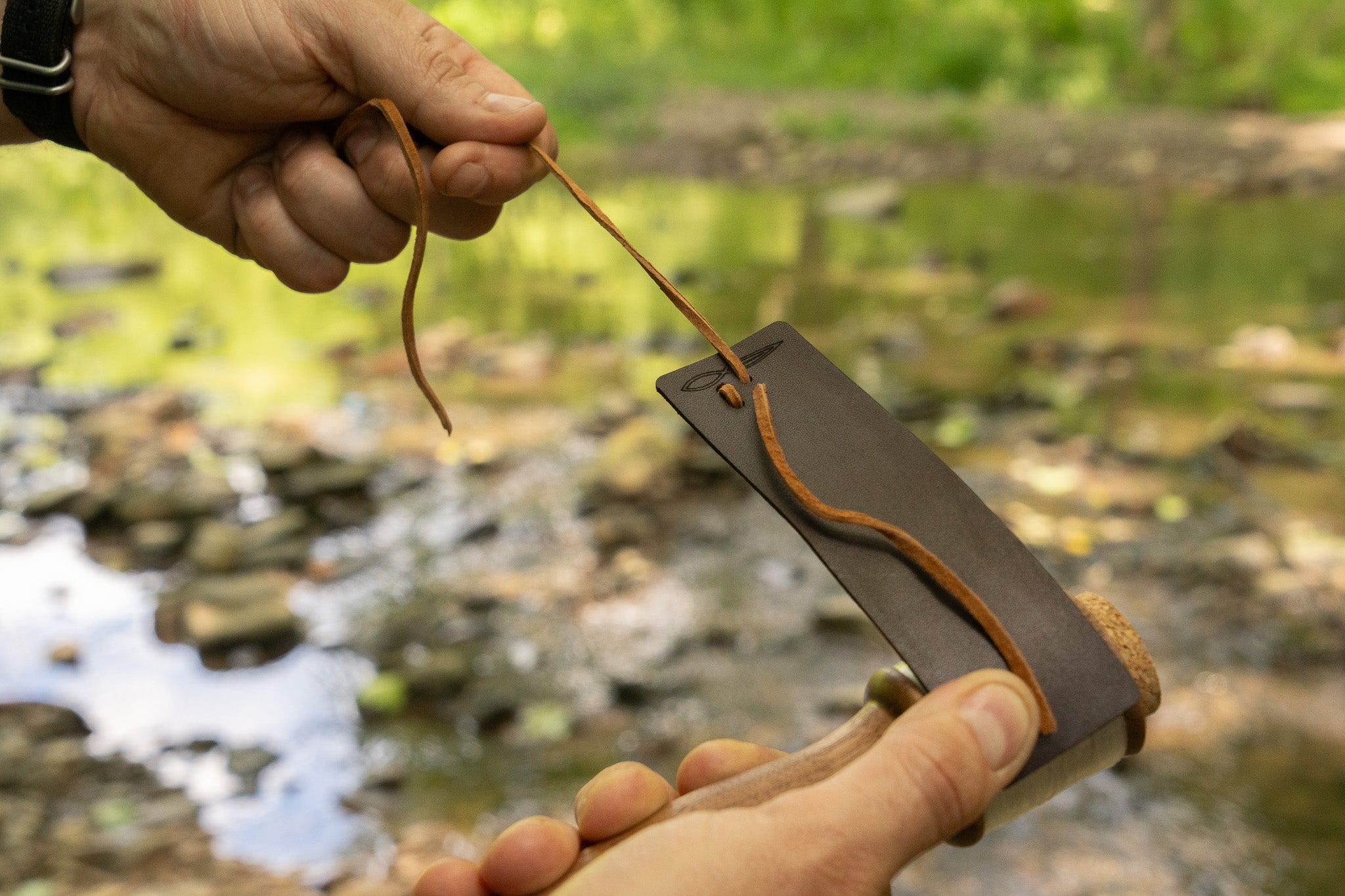 This leather handreel cover protects the line on your Daggerfish hand fishing reel while it's in your pack, keeping your line from getting tangled or abraded.
