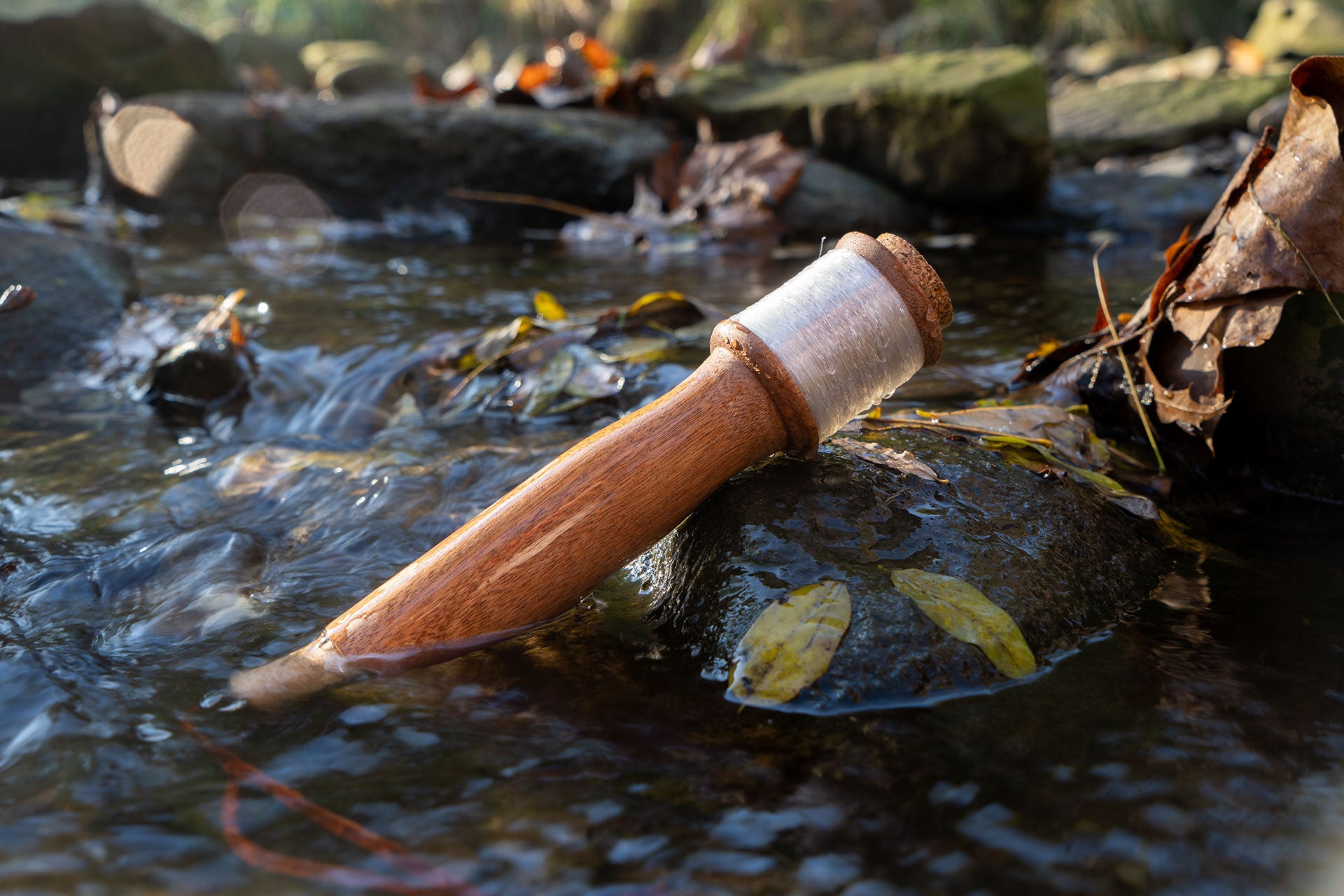 Originally used for boatbuilding, sapele is a naturally-water-resistant hardwood that makes this hand-line fishing kit perfect for kayakers, canoeists, and saltwater fishermen. Equally resistant to freshwater and saltwater, this hand-fishing kit can be completely submerged without losing its strength or smoothness.