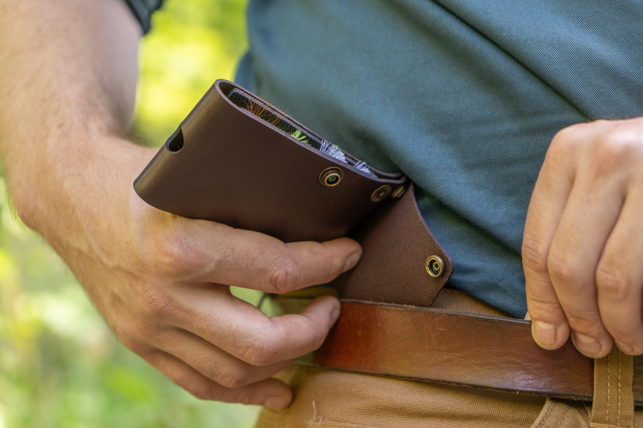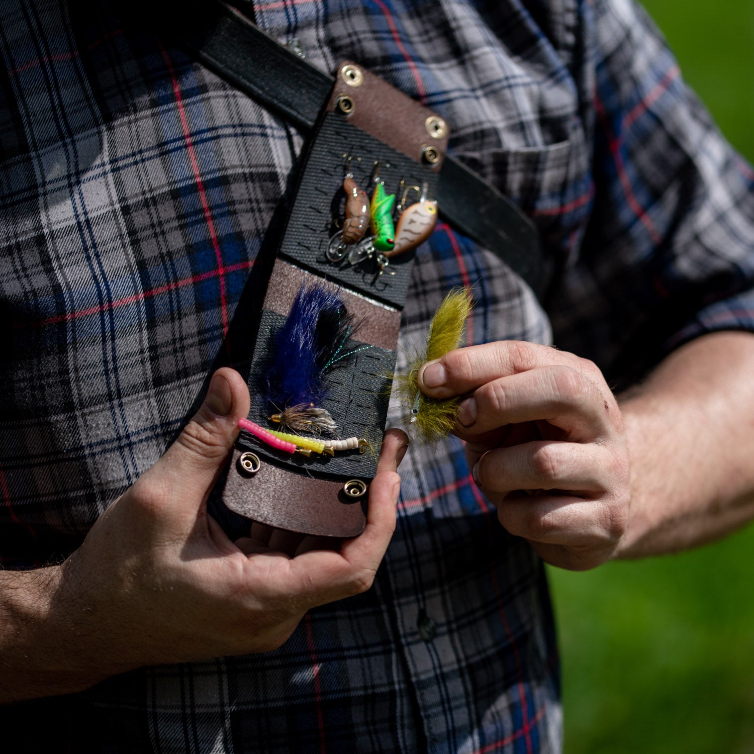 A tackle box on your belt. Small enough to fit in your pocket, but versatile enough to carry more than 40 different flies, lures, and hooks, the Fly Wallet is great for both hand line fishing and traditional fly fishing alike.