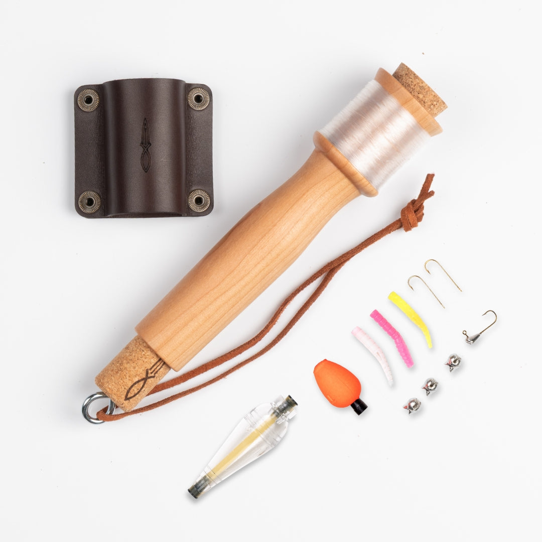 Each kit includes a solid-wood handline, a full-grain leather Strap Snap sheath, a bioplastic casting bubble and a lead-free bait and tackle kit. Plus, all fall you'll get a free Leather Reel Cover included!